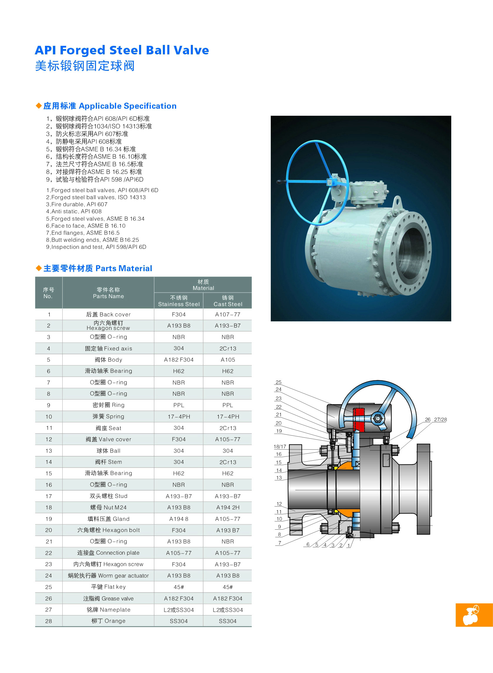 A105鍛鋼、WCB鑄鋼、不銹鋼304、316 |