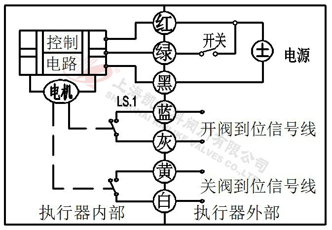 3、當(dāng)綠線開關(guān)斷開,閥門關(guān)閉,到位后執(zhí)行器內(nèi)部自動(dòng)斷電。